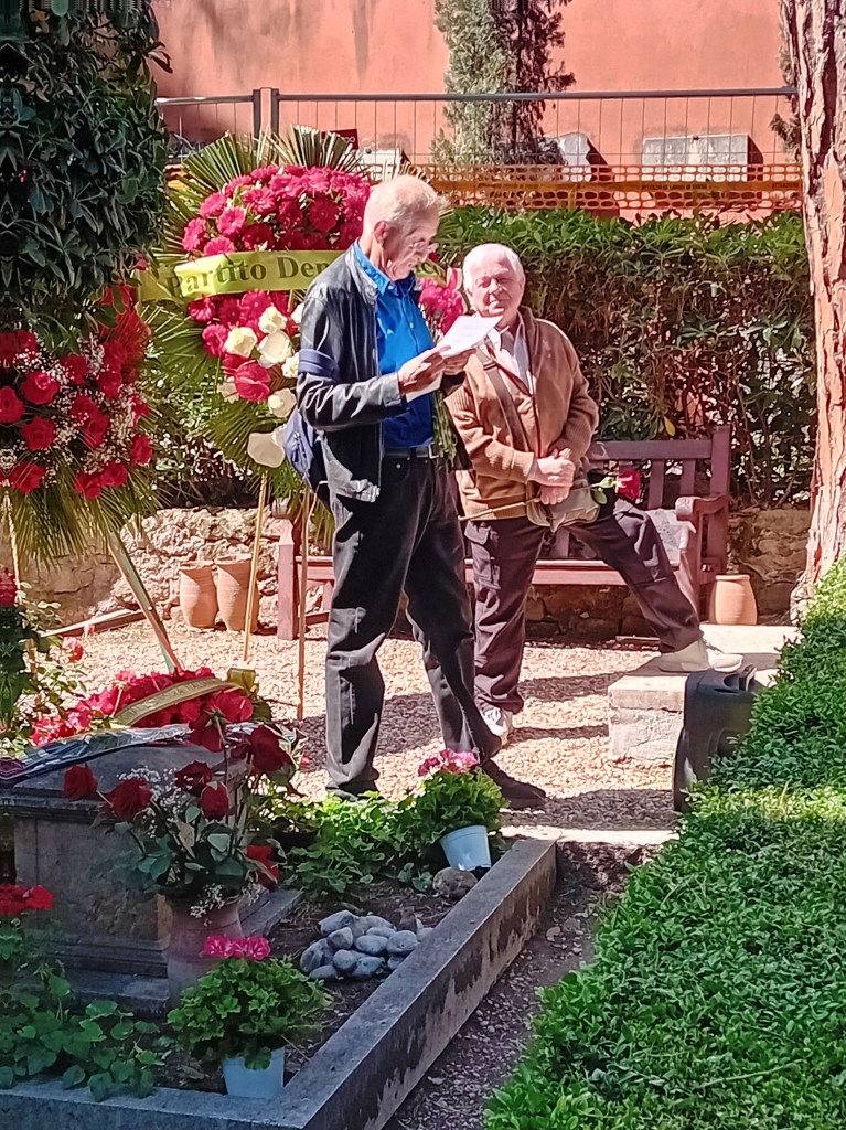Anche quest’anno siamo qui a ricordare come IGS Italia la morte di Gramsci, avvenuta il 27 aprile 1937, ottantanove anni fa. Anche quest’anno portiamo un fiore rosso sulla tomba di Gramsci. Anche quest’anno lo facciamo in un contesto difficilissimo e preoccupante: per la situazione internazionale segnata dalle guerre, per la situazione del nostro Paese, contrassegnata dalla presenza dell’estrema destra al governo e nelle più alte istituzioni della Repubblica nata dalla Resistenza.