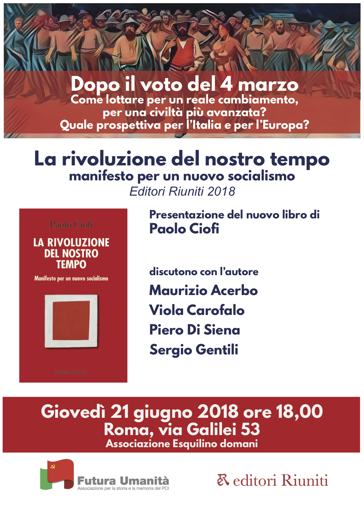 Con l’occasione segnaliamo che è disponibile il libro che raccoglie gli atti del nostro convegno “A cent’anni dalla rivoluzione di ottobre” con gli interventi di Aldo Tortorella, Michele Prospero, Raffaele D’agata, Andrea Sonaglioni, Alexander Hobel, Angelo D’orsi, Mario Tronti, Fulvio Lorefice, Pasquale Voza, Raoul Mordenti, Luciana Castellina, Gennaro Lopez, Guido Liguori, Piero Di Siena, Stefano Petrucciani, Paolo Ciofi, Francesca Chiarotto, Maurizio Acerbo, Dino Greco.